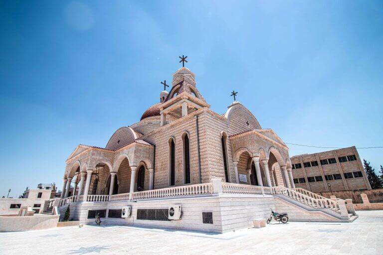 SOS Chrétiens d’Orient, which has been active in the region since 2016, organised a charity dinner in France in 2019 in the presence of Monsignor Nicolas Baalbacki, Metropolitan Archbishop of Hama. Thanks to the generosity of donors, the association has participated in this final stretch in the construction of the church by financing, for a total of €50,000, the paving of the courtyard around the church, as well as the outdoor theatre adjoining it, but also the sound system of the church and, a major project, the iconostasis.