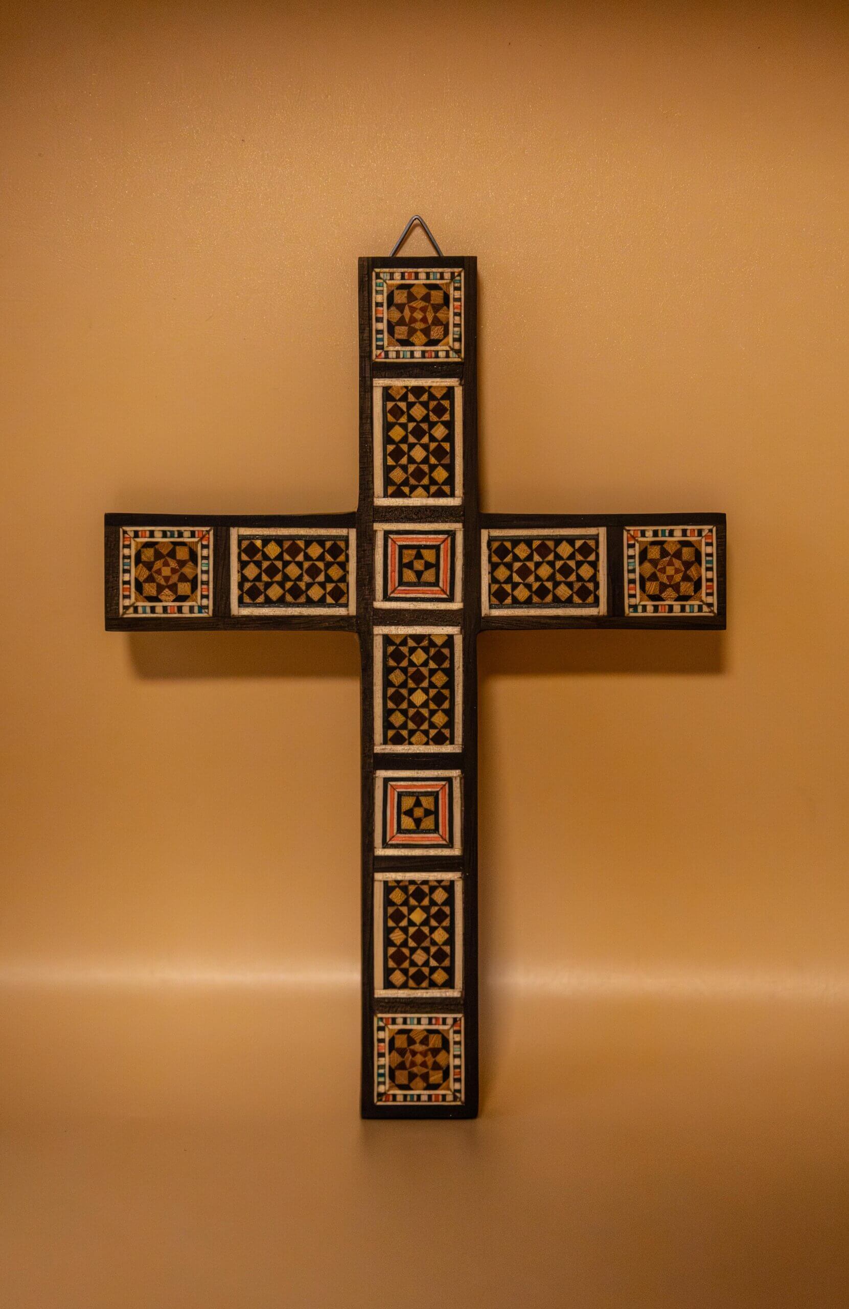 Fabriqués par deux frères, artisans marqueteurs, ces croix nous viennent tout droit du quartier d’Ananie, lieu de conversion de St Paul, à Damas.